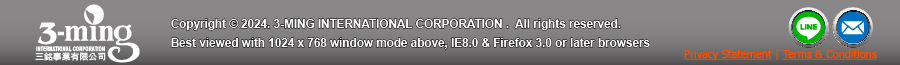 三銘事業有限公司 朱小姐 電話:(02)2278-9339 傳真:(02)2278-9340 Email:three_ming@yahoo.com.tw |